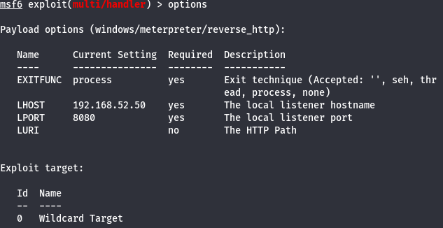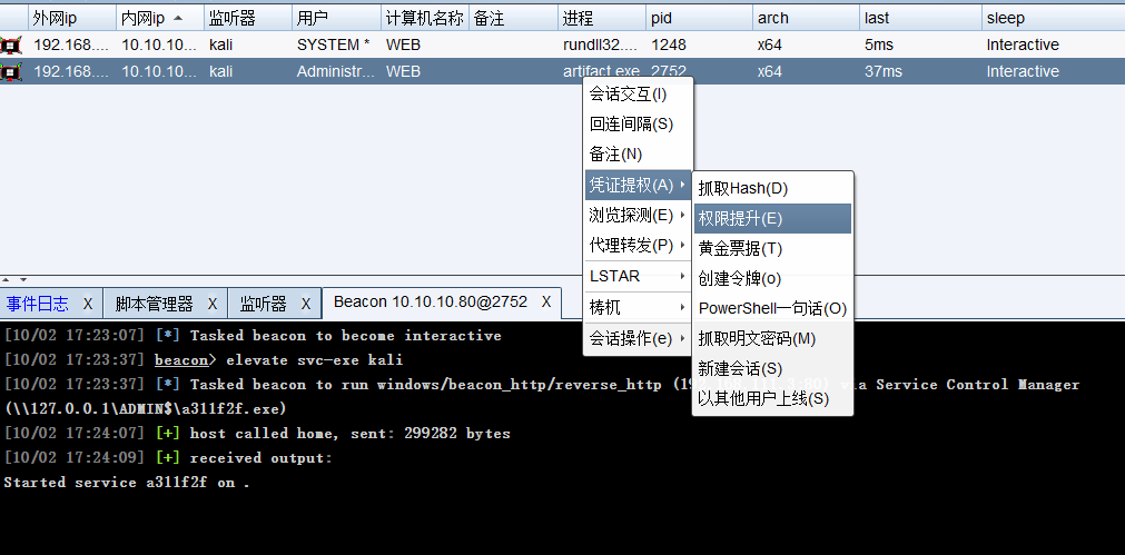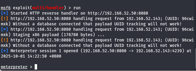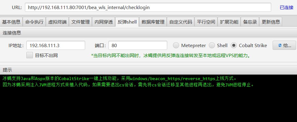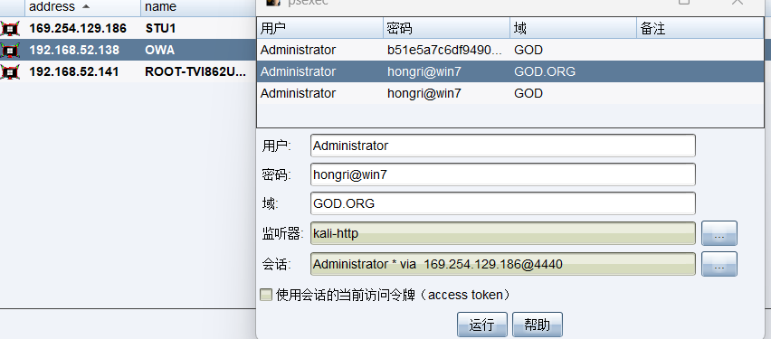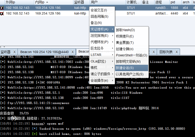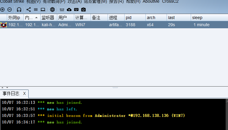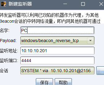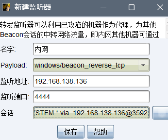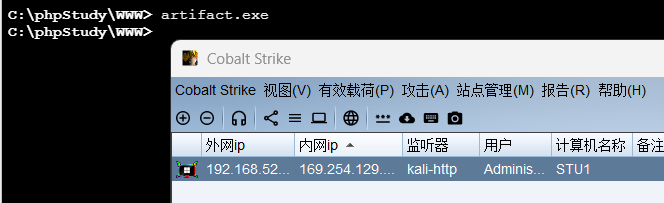 使用msf监听模块,ip就是kali的ip,端口就是监听的端口,payload要和cs相同,然后运行,开始监听