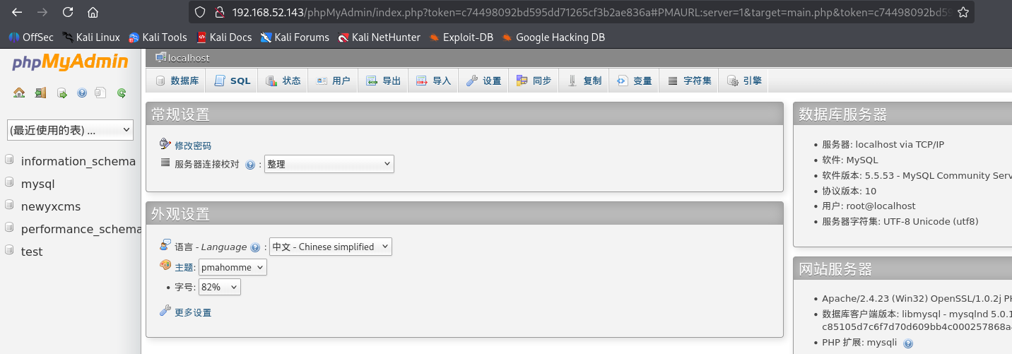 2003端口:phpmyadmin网站,而且未输入密码直接登录: