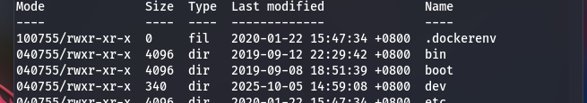 可以判断出在docker容器中,所以接下来要想办法进行docker逃逸