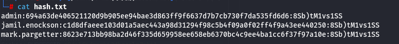 admin 的密码似乎太可疑了,使用 jamil.enockson 进行 ssh。