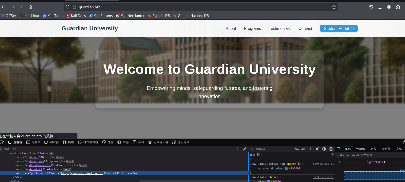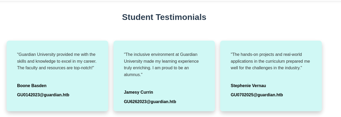 回到guardian.htb的首页,可以看到三个学生的邮箱