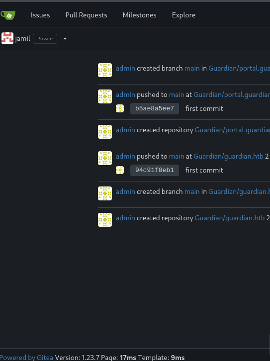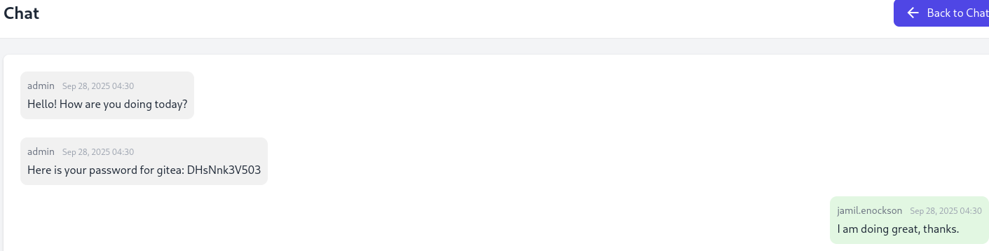 得到了一个gitea的密码:DHsNnk3V503 回复者的名称是jamil.enockson